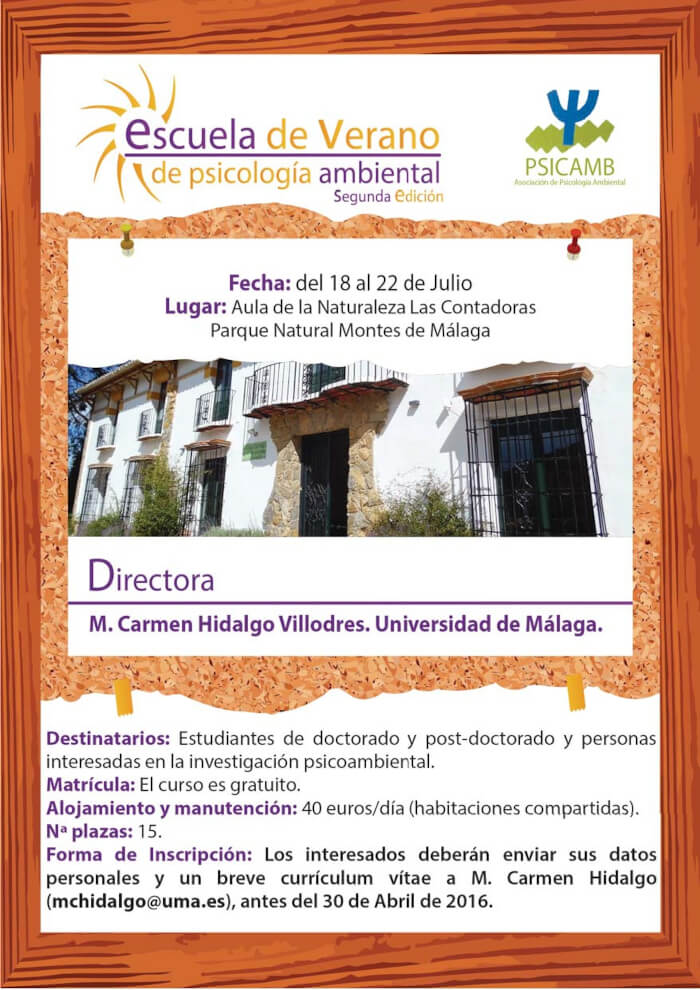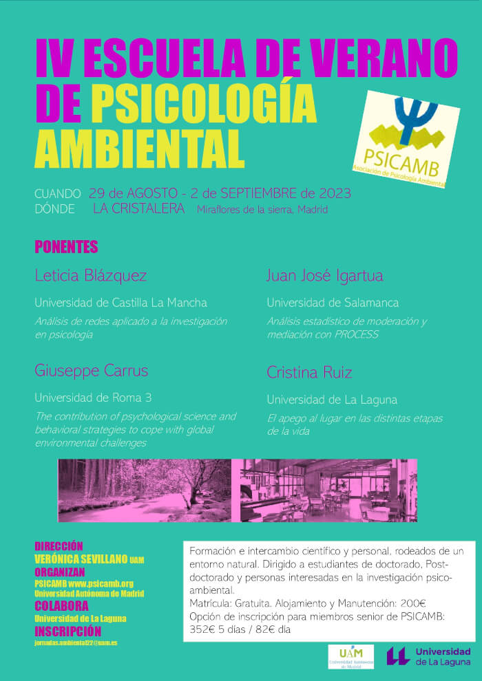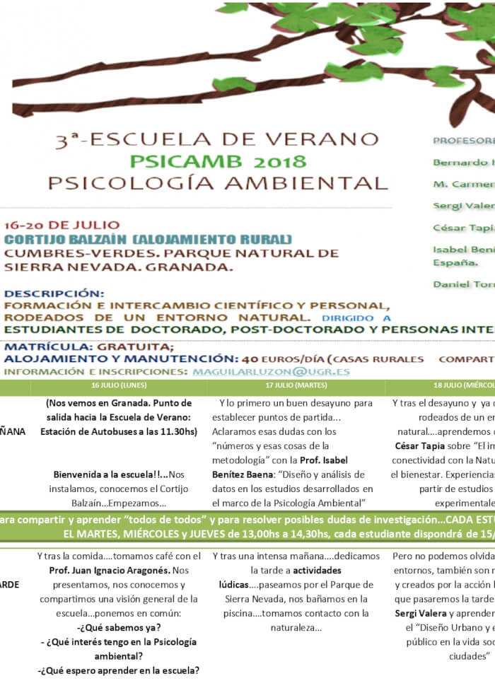 Entre otras actividades de carácter científico, Psicamb organiza una Escuela de Verano dirigida a estudiantes de doctorado y post-doctorado y personas interesadas en la investigación psicoambiental. Dicha Escuela de Verano tiene lugar cada dos años durante el mes de Julio, con una duración de 5 días (de lunes a viernes) en las instalaciones de un Centro de Educación Ambiental o Aula de Naturaleza, donde alumnos y profesores pueden disfrutar de unos días de formación e intercambio científico y personal, en unas cómodas instalaciones y rodeados de un entorno natural. El curso es totalmente gratuito, y los alumnos tan sólo han de abonar los gastos de alojamiento y manutención.